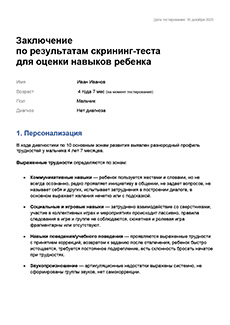 Родитель уже при первом обращении видит полную картину по ребёнку и аргументированный перечень необходимых занятий — доверие к центру растёт, проще принимать решение о начале работы.